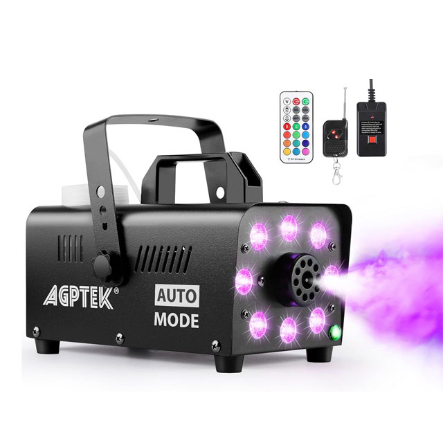 Máquina de humo con iluminación LED RGB integrada. Incorpora 8 LEDs con 13 colores y múltiples efectos para crear ambientes dinámicos.